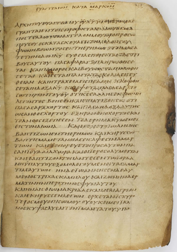 The-good-news according-to MARK.ΑΡΧΗ ΤΟΥ ΕΥΑΓΓΕΛΙΟΥ ΙΥ ΧΥ [ΥΙΟΥ ΘΥ] overwritten