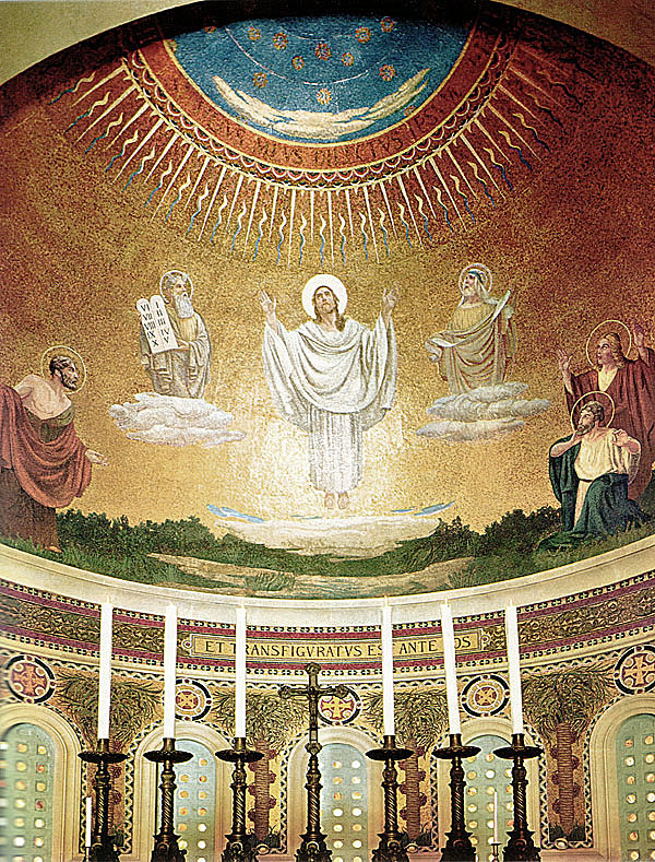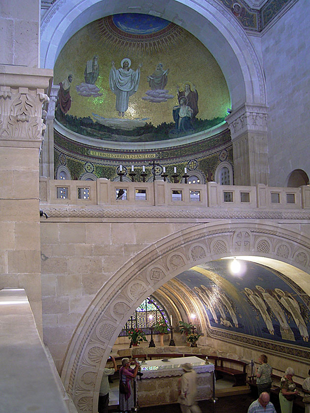 Picture gallery: Basilica of the Transfiguration Garden (234kb) | overview (205kb) | Basilica (204kb) | Nave (145kb) | Upper/lower Chancel (158kb) | lower Chancel (216kb) | upper Chancel (273kb).