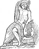 It would seem that the ancient lyre of the Greeks, the phorminx (φόρμυγξ), had the characteristics of a cithara. The barbiton, the Lesbian lyre, which was a large instrument, is shown in Fig. 42 (below).