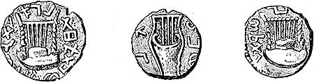 Some authors have affirmed that without doubt the Hebrews had citharas of classical form, and appeal in proof of their assertion to the devices on Maccabaean medals shown in Figs. 43, 44, 45. But putting the late date of these medals out of the question, it would be most unsafe to attach so much importance to anything found on coins.
