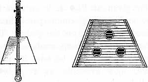 A glance at the Plate will show how important a part of the growth of musical string-instruments is due to the resonance-box. In its early state it was merely formed by stretching a membrane of skin (commonly snake-skin) across a rounded open piece of wood or half a dried gourd. In its more elaborate form it was adjusted to the requirements of the compass of sounds to be produced by the strings, to their thickness, tension, and position; also by carefully selecting the finest specimens of wood for use, by giving consideration to its weight, closeness of fibre, &c., and finally, by determining the best model or "shape of the resonance-box." By innumerable experiments in such things, extending perhaps over thousands of years, we at last are in possession of an almost ideal type of violin, as turned out by the great Italian masters (Stradiuarius in particular), who have so perfected the construction of this instrument with relation to its requirements, that the most skilful of modern workmen can make no better effort than to imitate their models, without indulging in a hope of ever surpassing them in general excellence.