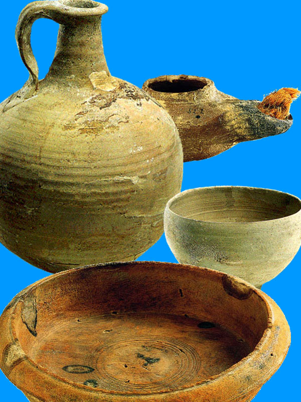 Ceramic Lamp (Herodian): height 4.3cm, length 10cm. (traces of palm-fibre