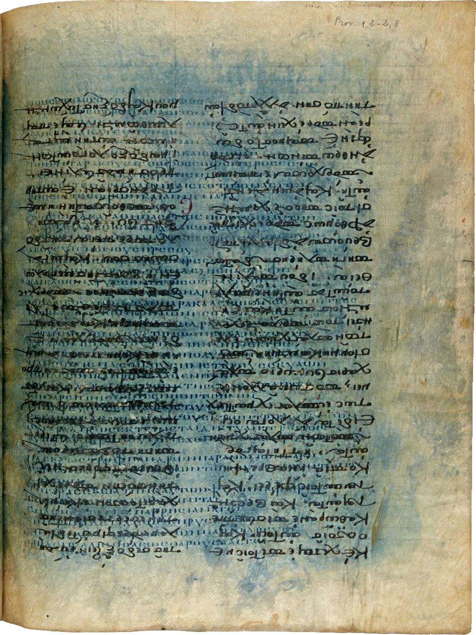 Now in the National Library of Paris, having been brought from the East to Italy early in the sixteenth century, and taken from Italy to Paris by Queen Catherine de' Medici. This manuscript is a prominent instance of a fate which befell many ancient books in the Middle Ages, before the introduction of paper into Europe. When vellum became scarce, a scribe who was unable to procure a sufficiency of it was apt to take some manuscript to which he attached little value, wash or scrape off the ink as well as he could, and then write his book on the vellum thus partially cleaned. Manuscripts so treated are called palimpsests, from a Greek word implying the removal of the original writing. The Codex Ephraemi is a palimpsest, and derives its name from the fact that the later writing inscribed upon its vellum (probably in the twelfth century) consists of the works of St. Ephraem of Syria.