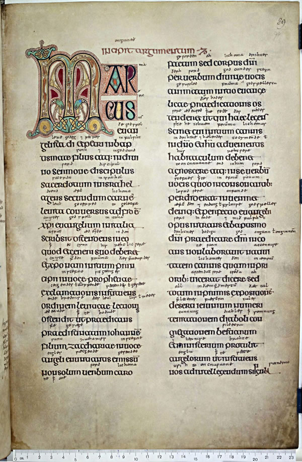 Written in honour of St. Cuthbert (d. 687) and illuminated in the finest style of the Northumbrian Anglo-Celtic school. Contains the Gospels, with interlinear Anglo-Saxon translation added in the 9th century.