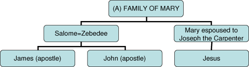 The inference that Salome was a sister of the Virgin Mary is based on a comparison of John xix.25, Matthew xxvii.56, and Mark xv.40. According to John xix.26-7, Jesus left his mother in the care of the apostle John, which implies a close connexion.