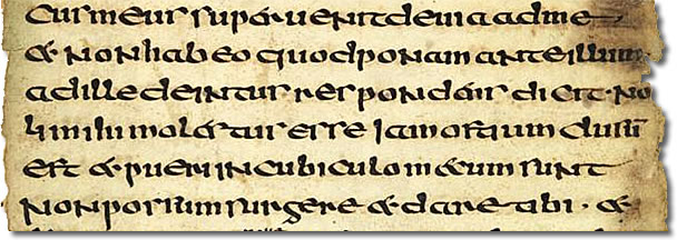 The round hand was used for books, and, less frequently, even for charters, during the eighth and ninth centuries ; but, although in very carefully written MSS. the writing is still solid, the heavy-stroke style of the Lindisfarne Gospels appears generally to have ceased at an early date. We give a specimen of a lighter character from a fragmentary copy of the Gospels which belonged to the monastery of St. Augustine, Canterbury, though not necessarily written there (Pal. Soc. i. pl. 8 ; Cat. Anc. MSS. ii. pl. 17, 18). It is probably of the end of the 8th century.