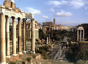 The beginnings of Rome are shrouded in obscurity. The city was situated on the left bank of the Tiber, about 18 miles from its mouth. Though it is known as the city of the seven hills, the original Rome was built on one hill only, the Palatine; but the neighbouring hills were successively included, and about the middle of the 6th cent. BC, according to tradition, a wall was built to enclose the enlarged city. The whole circuit of this wall was about 5 miles, and it was pierced by nineteen gates. Within the walls was a large area of vacant spaces, which were gradually built on later, and at the beginning of the Empire (roughly middle of 1st cent. BC) not only was the city congested with buildings, but large areas without the wall were also covered with houses. The Roman Forum; an open space measuring over 300 feet in length, and about 150 feet in breadth, was the centre of political, legal, and commercial life. At one end was the rostra or platform, from which speeches were delivered to the public; at the other end were shops. It was flanked by the senate-house and law-courts. On the top of the Capitoline Hill was the Capitolium, or great temple dedicated to Jupiter, Juno, and Minerva, and on the Palatine Hill the principal residence of the Emperor, and the Temple of Apollo, containing the public libraries, Greek and Latin. In the Imperial period four additional fora were built, devoted entirely to legal, literary, and religious purposes?the Forum Iulium begun by Julius Caesar, the Forum Augustum built by Augustus, the Forum Transitorium completed by Nerva, and the Forum Traiani built by Trajan?the most splendid work of Imperial times. Near the Viminal Gate in the E. lay the camp of the Praetorian guard (since Tiberius), to which Paul must have been conducted. On the 'Vatican Mount' W. of the Tiber lay the Circus of Gains and Nero, where Peter may have been martyred. Various estimates of the population of Rome in the 1st cent. have been given: 2,000,000 seems not unlikely. All nationalities in the Empire were represented?among them many Jews, who were expelled by Claudius in A.D. 50, but returned at his death four years later. Slaves constituted a great part of the population.