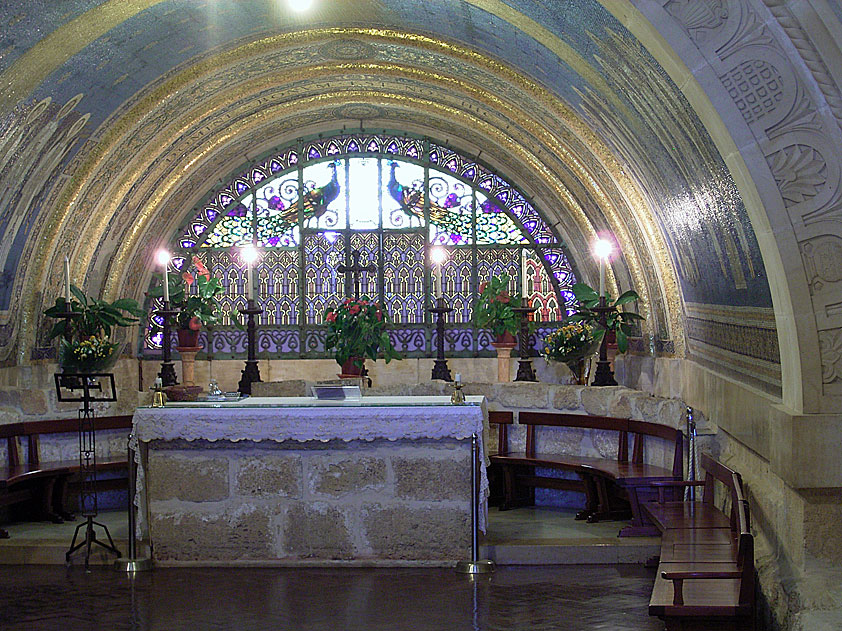 Picture gallery: Basilica of the Transfiguration Garden (234kb) | overview (205kb) | Basilica (204kb) | Nave (145kb) | Upper/lower Chancel (158kb) | lower Chancel (216kb) | upper Chancel (273kb).