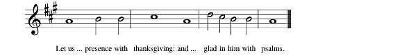 This gives two notes to the word and (short vowel) though, sung lightly and quickly, the two notes on the short vowel are not distressing. By clamping verses together and thus hiding the parallel structure of the text— very obvious and dramatic here—the English psalter achieves with the alia breve chant an otherwise good result by neglecting the reciting note (it is made to carry the first half of the verse) from the first phrase and by taking the second phrase on the first half of the chant, thus: