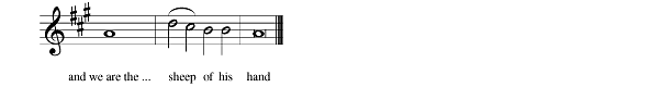 we have (neglecting the recited portion which presents no difficulties because there is no melody) four word-accents and shall get the best result by treating the chant as a Sapphic: